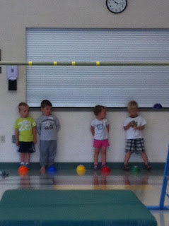 But wasn't so sure about this part where the instructor had them guard a half-ball (but NO stepping on it) while they waited their turn. It has been fun to see him climb on things that were made for climbing on:)
